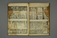 ![]() All images © Waseda University | Page 51, on the right: Names of another type of entertainer, (新改? 無? 宿?) untranslated. The names are probably all male. Page 52, on the left: I wish I knew. The top row is labeled differently than the bottom row. In the bottom left corner of most cells is a price. This listing continues until page 56, the end of the saiken. Top header: *** *** 戸 本? 町筋北 Top subhead: ** ** 堂 蔵? 梭? 目 録? Bottom subhead: Tsutaya Shigesaburo (蔦屋重三郎) [Name of the book’s publisher] |